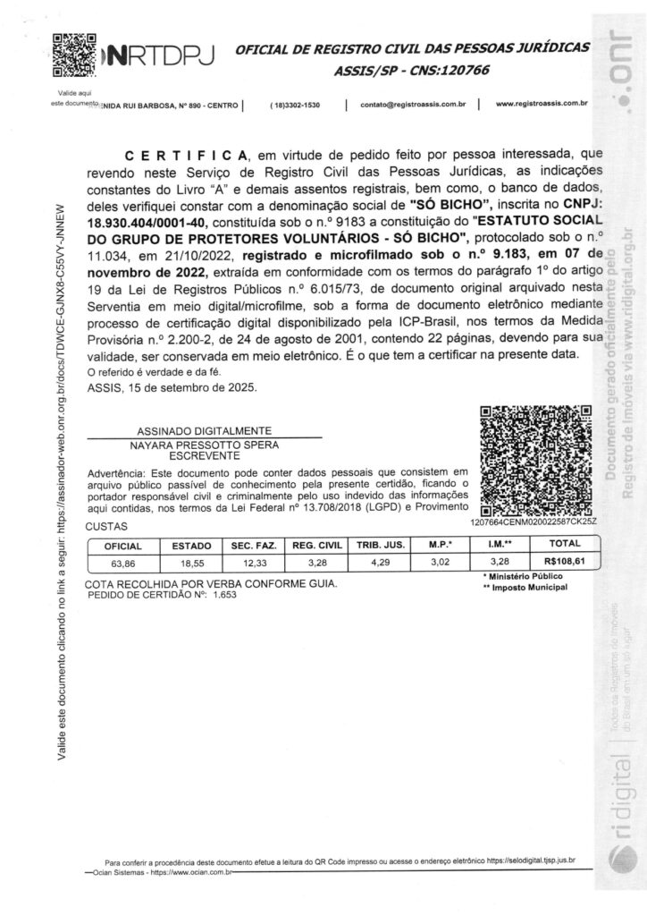 LEI Nº 7.689, DE 30 DE DEZEMBRO DE 2024 Declara de utilidade pública o Grupo de Protetores Voluntários Só Bicho.