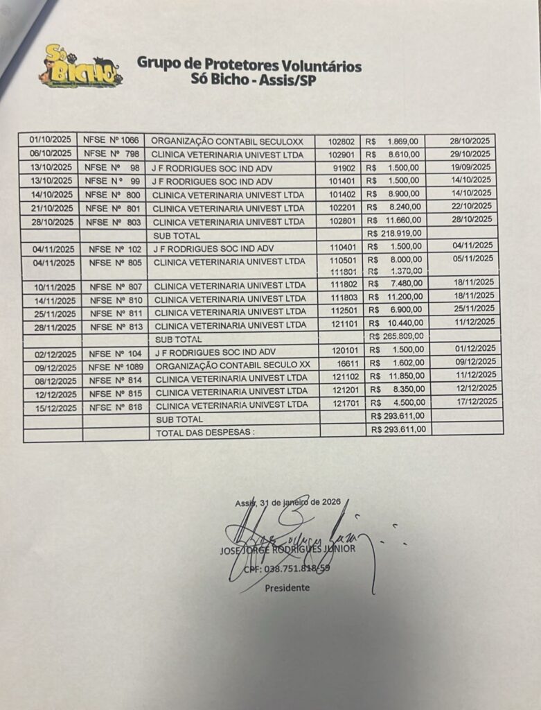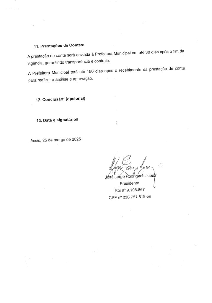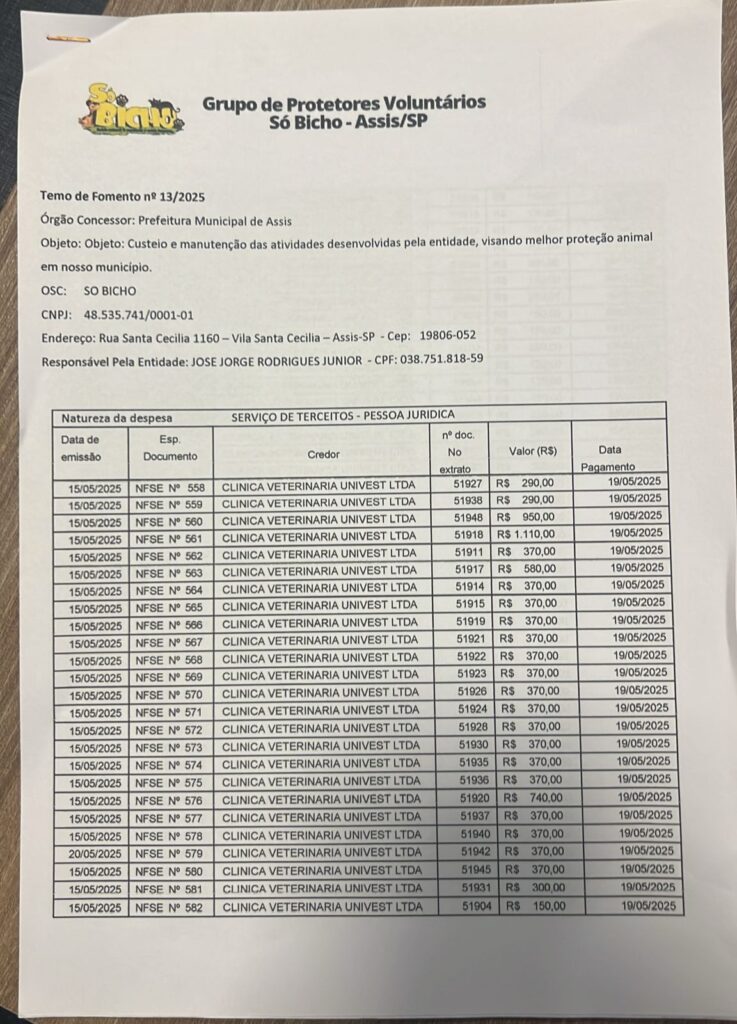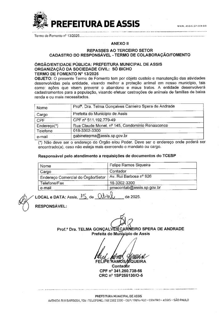 TERMO DE RELAÇÃO DE GASTOS E DESPESAS DO TERMO DE FOMENTO Nº 13/2025